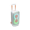 FUTURISTIC LIGHTSHOW UP TO 18 HOURS OF PLAY TIME TELESCOPIC HANDLE AND WIDE; STURDY WHEELS MULTI-SPEAKER CONNECTION BY AURACASTTM JBL PARTYBOX APP MADE IN PART WITH RECYCLED MATERIALS SPLASH PROOF BLUETOOTH® VERSION: 5.4 OUTPUT POWER: 240W RMS