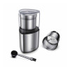 H2; easy-care casing made of brushed stainless st Grinding F2degree individually selectable via the switching on/off by applying pressure on the cover Safe and easy handling Detachable parts are dishwasher proof; transparen Detachable parts are dishwasher proof; transparen Integrated cord storage Includes: 2 exchangeable stainless steel containe