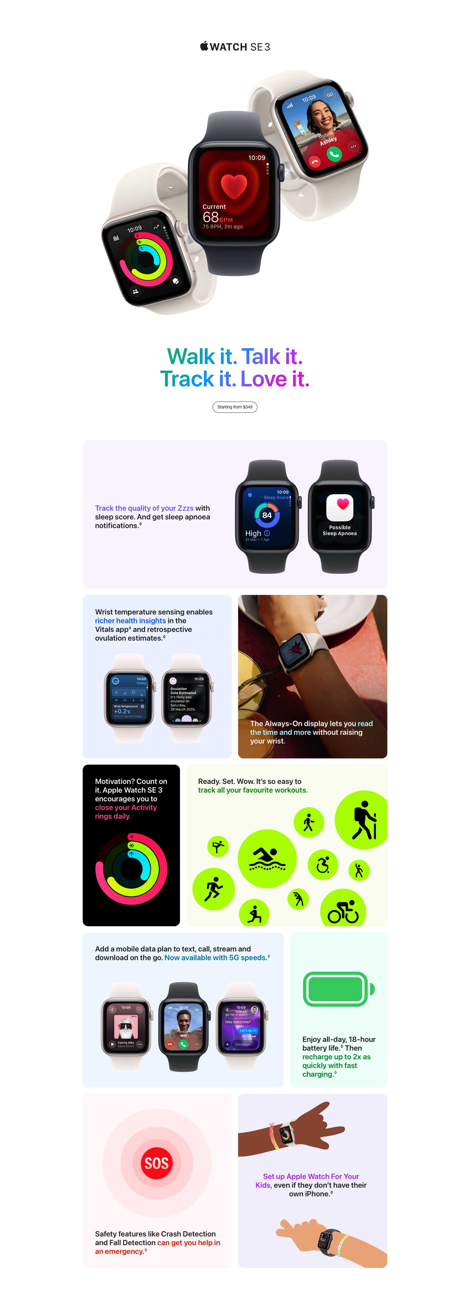 Apple Watch SE 3 GPS + Cellular 40mm Starlight Aluminium Case with Starlight Sport Band - M/L