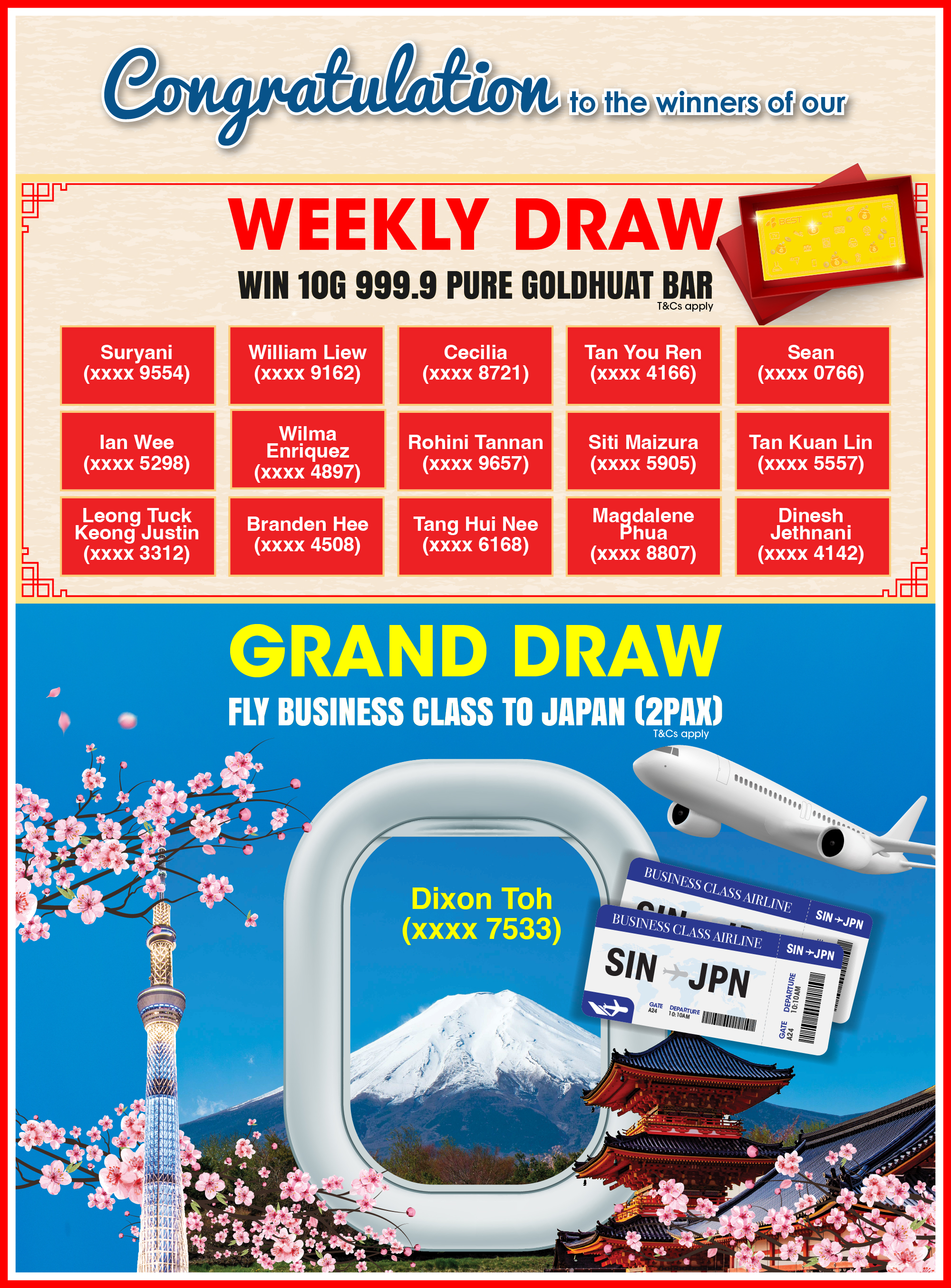 ![]() | Monthly Draw Dates: • Draw #1: 10 December 2021 • Draw #2: 11 January 2022 • Draw #3: 11 February 2022 Grand Draw Date: • 11 February 2022